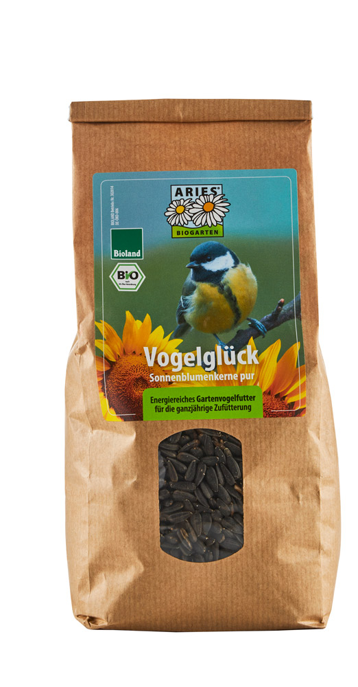 Sonnenblumenkerne stecken voller gesunder Fette und sind besonders eiweißreich, ein ideales Gartenvogelfutter für die ganzjährige Zufütterung, auch während der kräftezehrenden Phase zwischen Nestbau und Aufzucht des Nachwuchses. Besonders schmecken die ungeschälten Bio-Sonnenblumenkerne aus heimischem Bioland-Anbau Hartfressern wie Finken, Meisen und Sperlingen. So bringen Sie Ihre Gartenbewohner gut durchs Jahr!